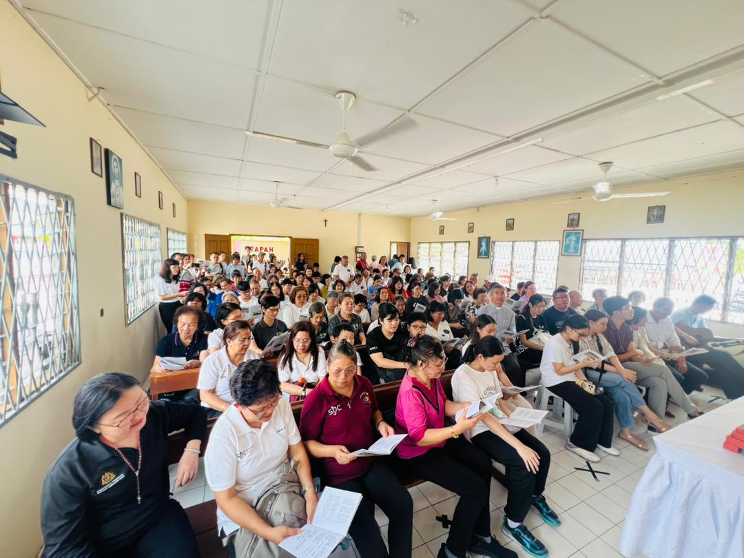 随后,由古晋七里圣心堂副本堂胡丕贤神父(主徒会会士)带领朝圣分享与信仰反思,引导大家在宁静中聆听天主的声音。胡神父在讲座中指出,信仰不仅是救恩的传承,更需要在生活中点点滴滴的真切回应——一种以牺牲与爱不断作出选择的过程。胡神父也分享了他自己圣召的故事,他强调:“每一次选择爱、选择宽恕、选择与天主同行,都是与耶稣的相遇的美好见证。”