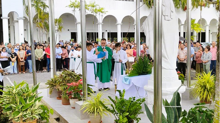 MIRI — On the cool and refreshing morning of Sunday 17 August 2025, the congregation of the Church of Mater Dei, Lutong, Miri witnessed a joyful and grace-filled occasion when they participated in the blessing of the new shrine of Our Lady of the Immaculate Conception at the car park area facing the entrance foyer of the Church.