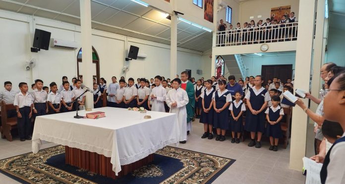 SIBU — At St Teresa Oratory on Tuesday morning (7.00 am) 26 November 2024, Fr Edward Raymond celebrated the Feast of Christ the King, the last week of the liturgical year, with more than 170 students, teachers and the principal of Hua Hin English Primary School, together with brothers and sisters of the Neocatechumenal Way community.