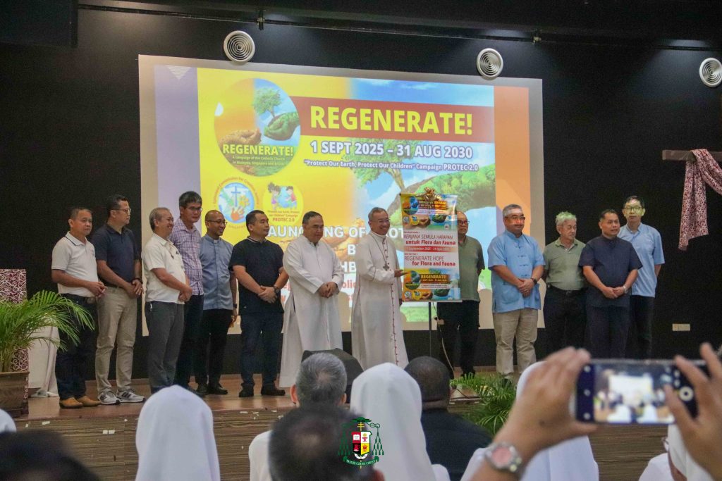 After Intercessory prayers in English, BM and Mandarin, the PROTEC 2.0 Campaign was launched by Archbishop Simon Poh with the release of the campaign banner and handing over of the REGENERATE! 5-year campaign posters to parish rectors.