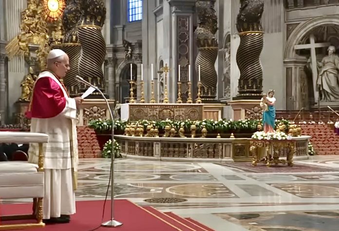 Pope Leo XIV delivering his reflection during the Prayer Vigil for Peace on April 11. (Screen grab from Vatican News’ YouTube site).