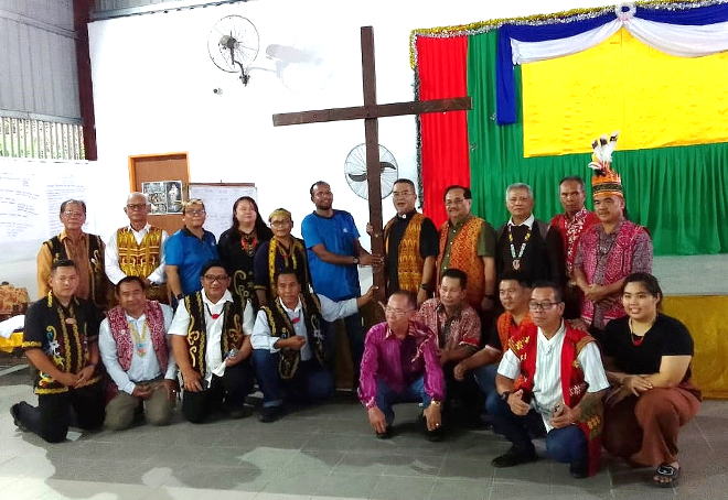 St Michael’s Parish, Batu Niah handing over the Blessed Cross to Holy Family Parish, Lapok.