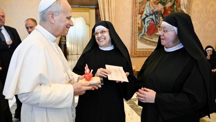 Pope Leo XIV meets with cloistered Augustinian religious and encourages them to live in joy and communion with Christ, while embracing humble charity toward one another.
