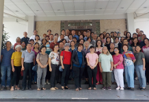 Anggota kongregasi memberikan bunga dan kebaktian sebagai penghormatan kepada Bonda Kita.