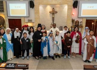 2025年10月31日,在古晋肯雅兰圣三堂的诸圣节华语弥撒中,华文组主日学的师生们再次通过扮演圣人,生动地再现了圣人的榜样与故事。今年总共有24位老师和学生扮演圣人。在弥撒前,老师和学生们都按照圣人队伍游行进入教堂, 此游行由圣比高为首, 接着圣母玛利亚、圣约安纳、圣傅天娜...