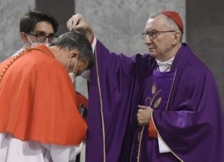 Cardinal Pietro Parolin presides over the customary Mass on Ash Wednesday in Rome's Basilica of Santa Sabina in place of Pope Francis, who...