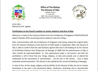 On the Memorial of St Agatha, the Diocese of Sibu issued a clarification regarding events associated with Julia Kim of Naju, Korea. This...