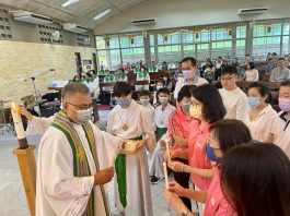 2023年4月8日,圣周六这天傍晚六时,圣若瑟总主教座堂华文组首次在加尔默罗圣衣会小圣堂举办了华语复活节前夕守夜弥撒。