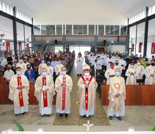 传统上每个教区的主教和他的教区内的全体司铎于圣周四共祭的祝圣圣油弥撒,今年在古晋总教区提前一天举行。