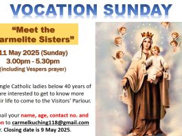 Date: 15th October 2023 (Sunday)Venue: Carmelite Monastery, Kuching (Visitor’s Parlour)Time: 3.30 pm -...