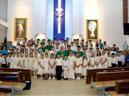 The 17th Worldwide Children’s Eucharistic Holy Hour (WWCEHH) at Blessed Sacrament Church on 4 October began with a welcome and introduction at Our Lady of Lourdes Grotto.