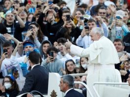 Pope Francis meets with participants in the upcoming Christmas Contest, a Christmas concert in which young people compete with original Christmas music, and tells...